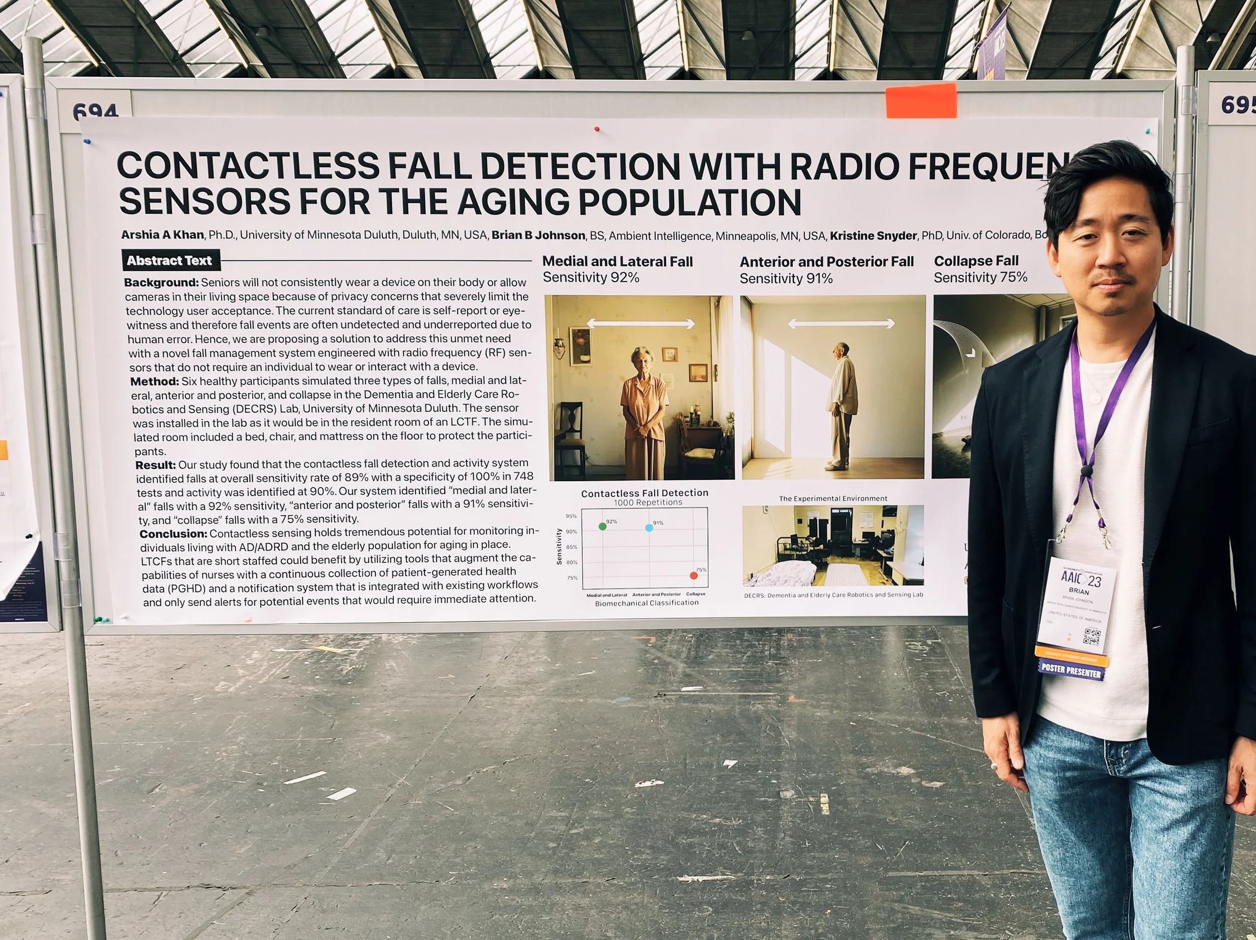 As Founder of Ambient Intelligence I have received several research grants to develop a noninvasive and contactless monitoring system for the aging population. If successful this solution has the potential to transform how humans care for one another as aging individuals progress on the continuum of care. The current standard for assessing the ability to live independently is eye-witness. Our systems collects 1000 pieces of data per minute, 1B per year on the activity trends of individuals. In the summer of 2024 we attained venture capital backing by gener8tor and Allianz.